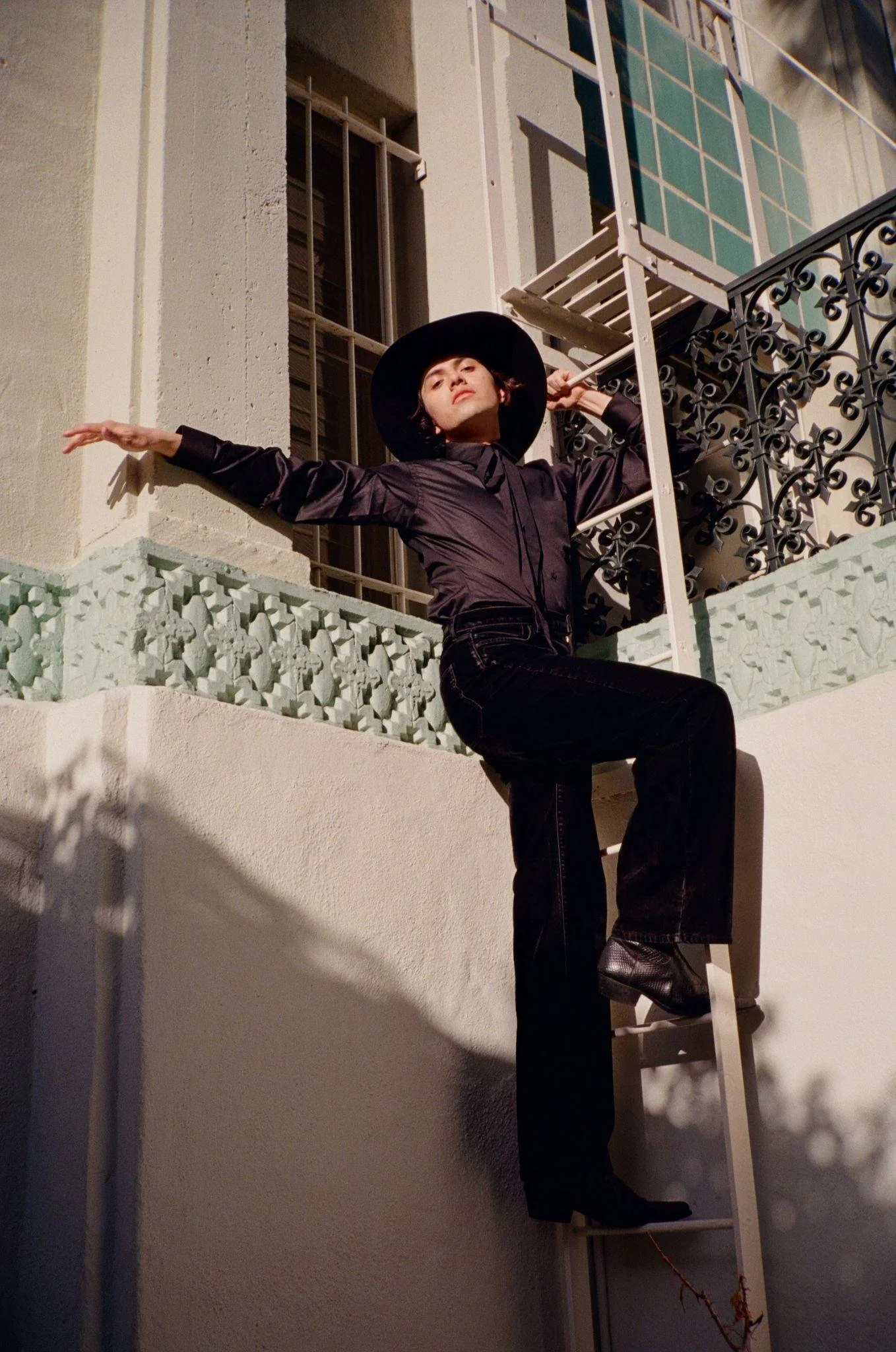 Amadour perched on the Los Feliz Manor building in Los Angeles. Photography by Justin Reissman.