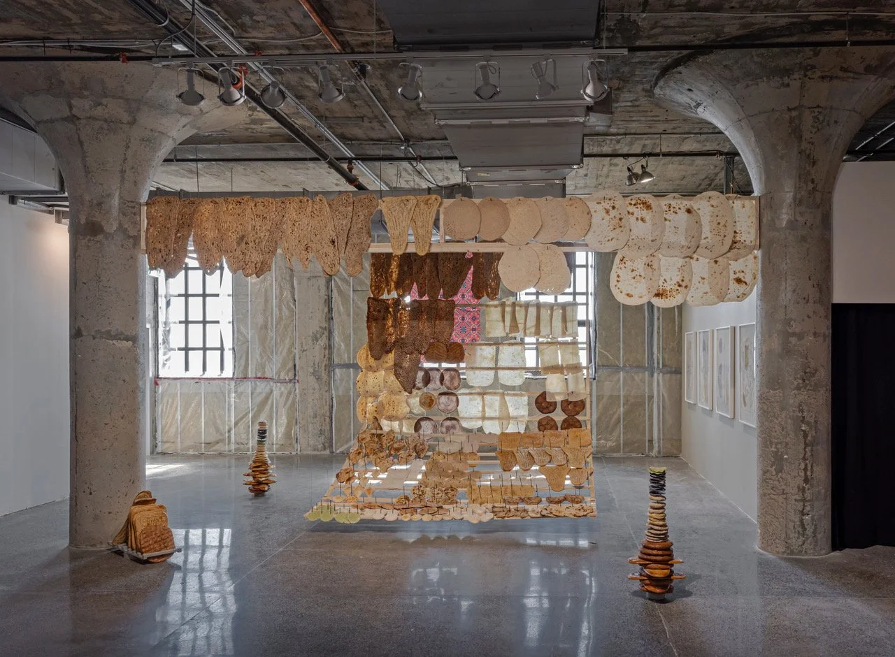 The installation took the form of a woven archive—a large hanging curtain composed of flatbreads. Museums usually rely on taxonomy: linear histories, rigid categories, and fixed national identities. Bread resists that. It’s fugitive and slippery. No single bread belongs to one nationality; it crosses borders freely. The sculpture had to reflect that, which is why it was woven together in a more organic, transitional way.