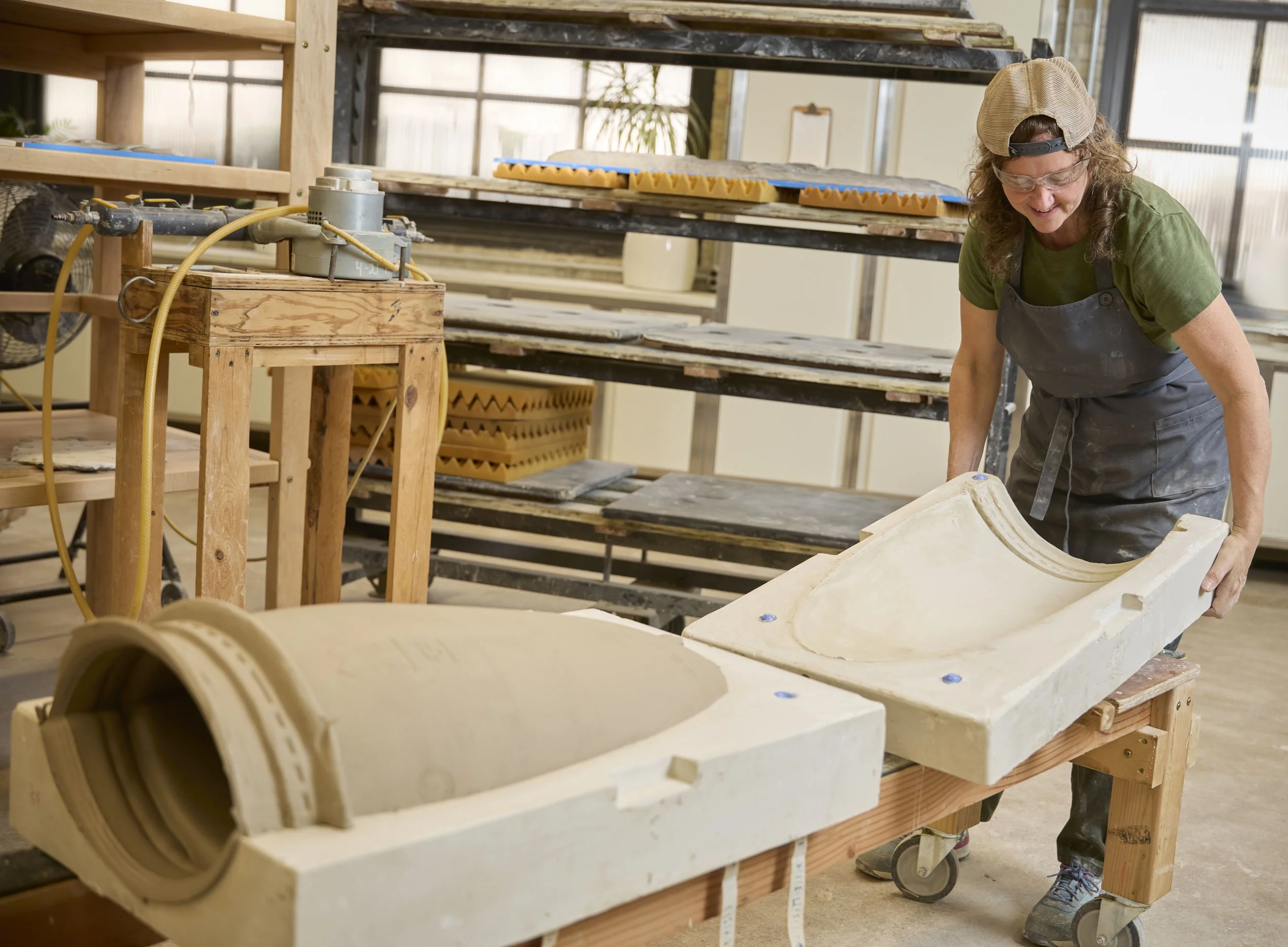Working in the factory itself has been incredible. The residency has been running for over fifty years, and what’s remarkable is working alongside Kohler factory associates—people making sinks, toilets, bathtubs. The man next to me has been making urinals for seventeen years.