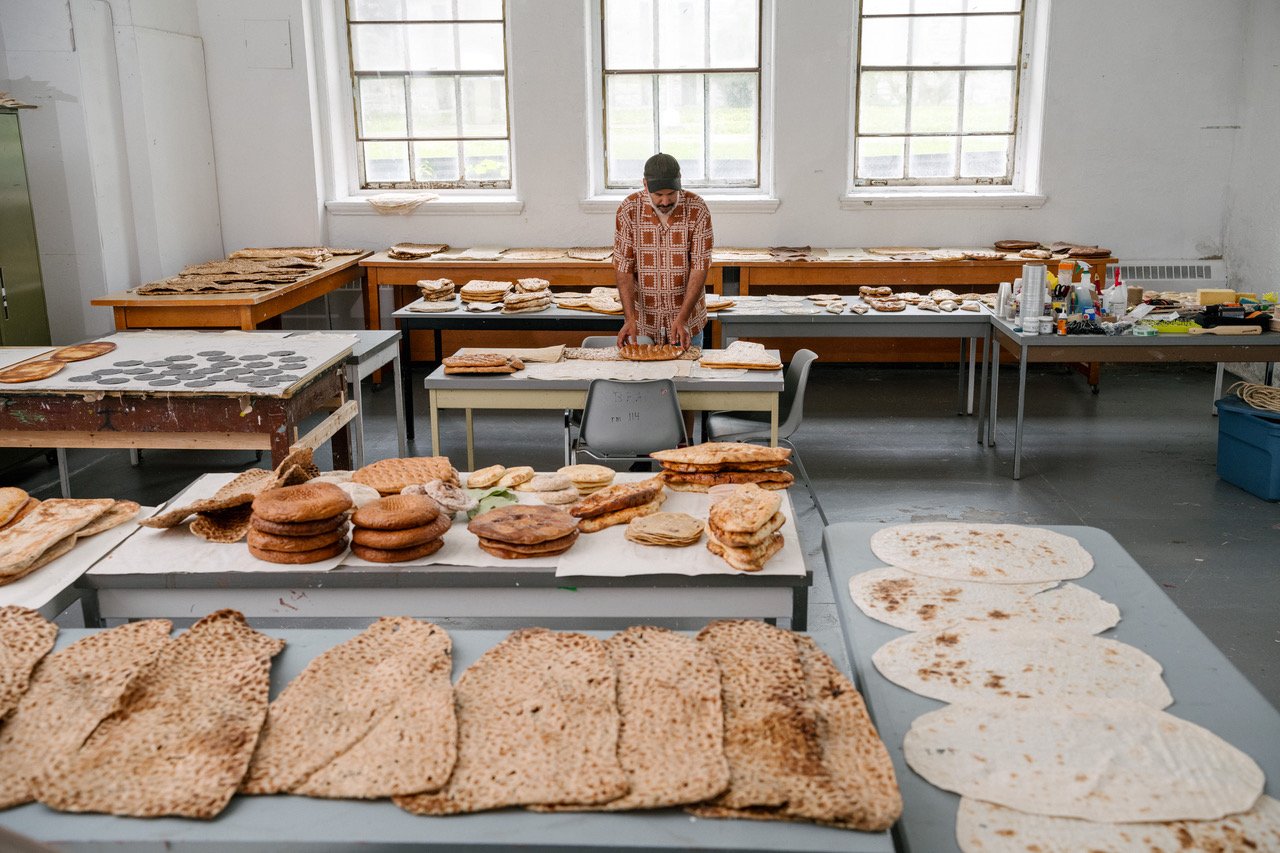 For the Toronto Biennial, I visited about forty bakeries across the Greater Toronto Area and collected flatbreads to build a library for the city. The project explored migration through bread, so I worked primarily with diasporic bakeries—places using tandoor ovens, for example, Iranian, Pakistani, Indian, Afghan, Azerbaijani, Tajik, Uzbek, East African, Mexican, and European bakeries. I wanted as broad a spectrum of baking knowledge as possible.